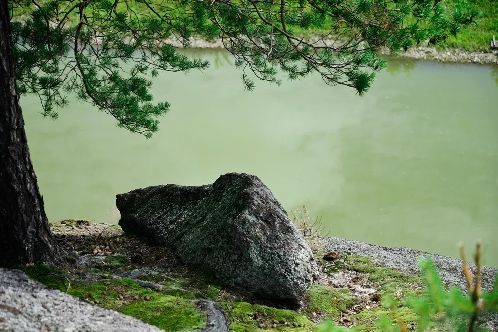 - Сказочный ландшафт. В центре композиции — знаменитая скала «Голова Кита», чьи очертания словно выточены природой в форме морского гиганта. Вокруг — массивные каменные глыбы, поросшие деревьями, и зеркальная гладь озера, меняющая цвет от нежно‑голубого до изумрудного.