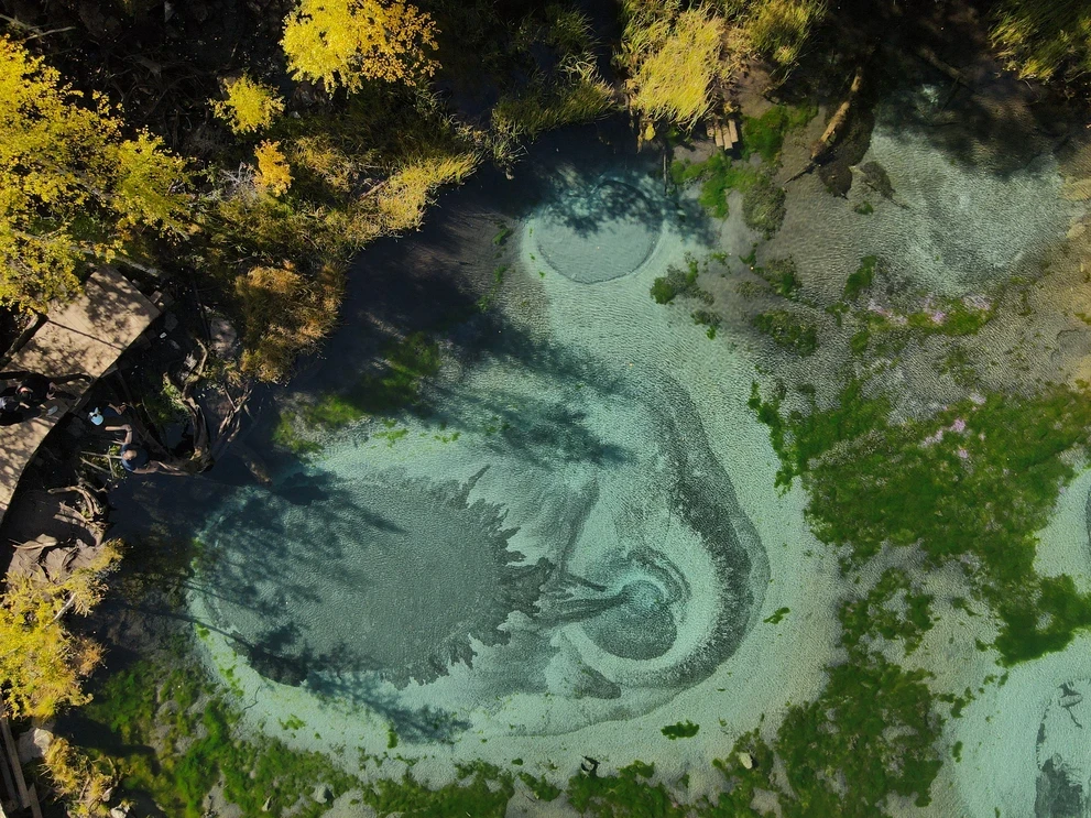 Далее нас ждёт уникальное Гейзерное озеро — единственный в России водоём такого типа. Это идеальное место для фотосъёмки: на поверхности воды образуются причудливые узоры, напоминающие гейзерные разводы.