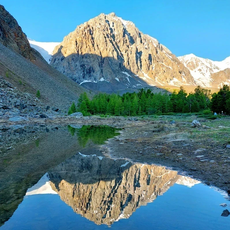 Если Вы всегда мечтали влюбиться в горы – то Актру это самое подходящее место для этого! Удивительное ущелье с сильными горами, ледниками и хрупкими лиственницами. Здесь мало туристов, нет суеты. Тишина, покой, горы, озера… В этом райском уголке Алтая проведем 6 счастливых дней и Вы точно не захотите отсюда уезжать!