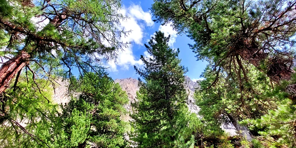 Пораньше выходим из лагеря на треккинг. Тропинка уверенно поведет нас по кедровому лесу, местами будут открываться потрясающие виды, только и успевай доставать телефон для фото)))) Выйдя из зоны леса, пойдем вдоль шумной реки, а впереди уже будут заманчиво просматриваться ледники.
