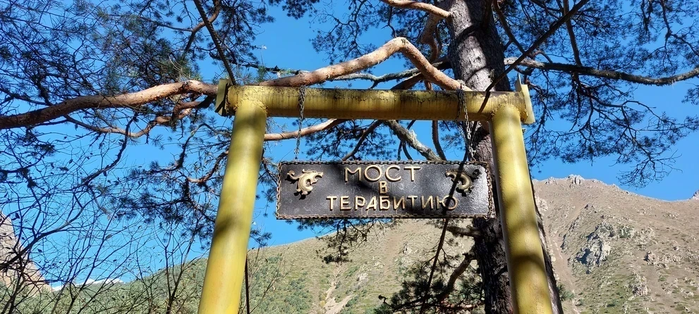 Не будем медлить, отправляемся на маршрут! Сегодня легкий день, набор высоты составит всего лишь около 200 м. Зато какая приятная тропа в этом ущелье! Она ведет по хвойному лесу, далее переводит по мостику через речку и выводит к развилку. Направо пойдешь – на нарзан попадешь, налево пойдешь – к леднику в гости придешь!
