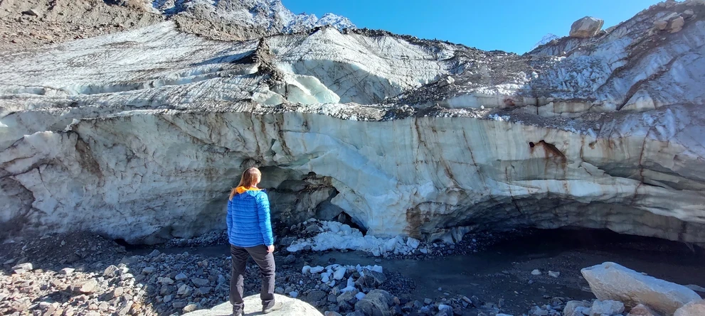 Вскоре выйдем к нашей главной цели – языку ледника Шаурту. Ледник постоянно тает и из его недр рождается ледниковая река. Украшением наших фотографий станут снимки зеленого льда и ледяной пещеры Шаурту!