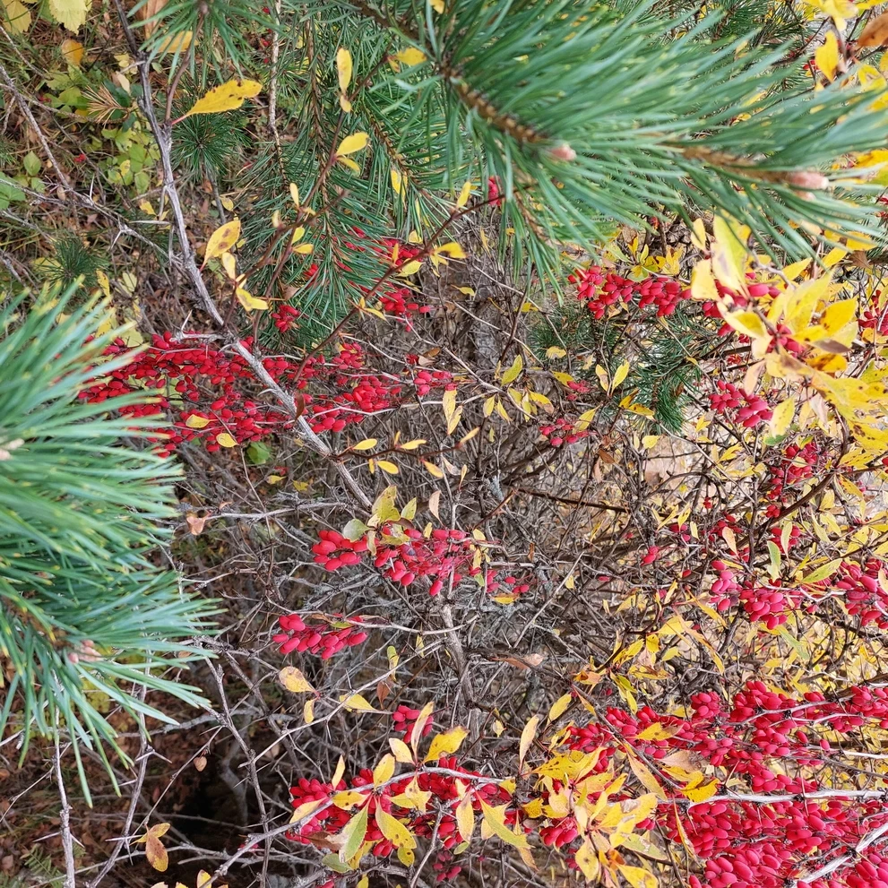 Погуляв возле ледника, вспоминаем, что у нас есть еще одна не посещенная локация – нарзанный источник ;). К нему путь пройдет по хвойному лесу. В турах в августе и осенью любители горных ягод рискуют надоло здесь задержаться, поскольку в лесу растет огромное количество брусники))).