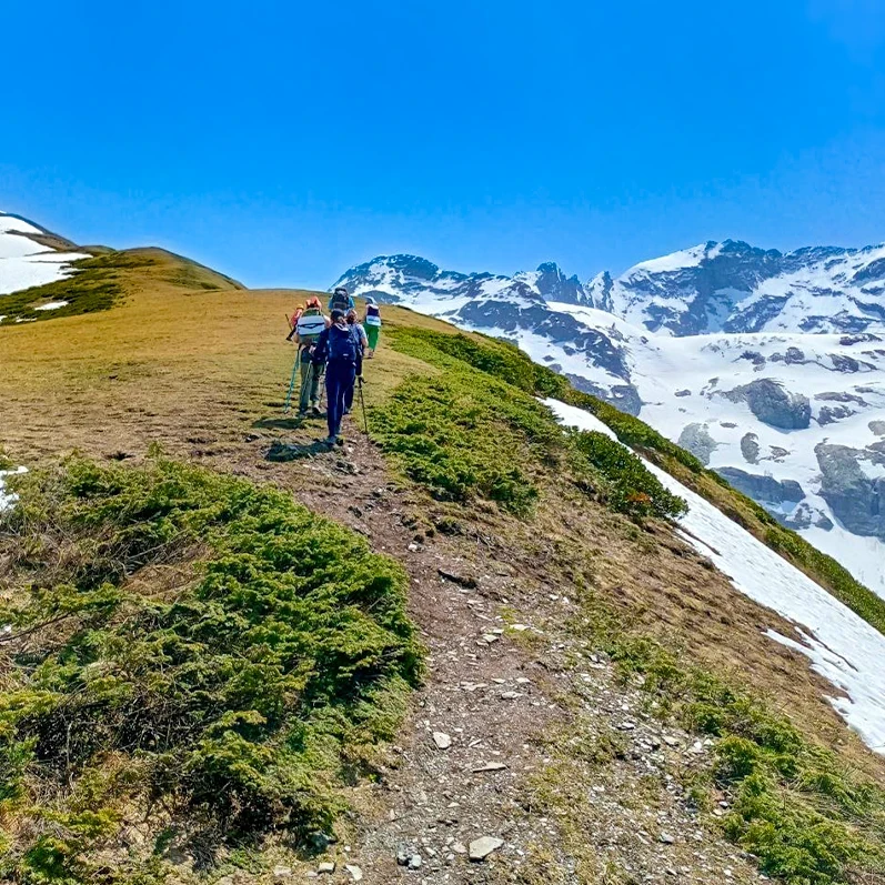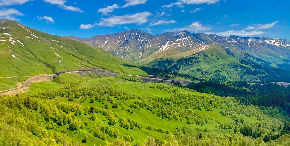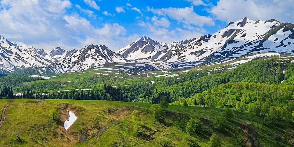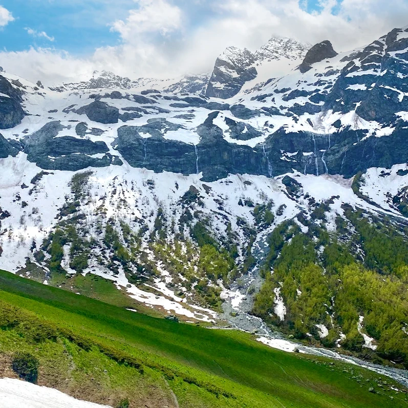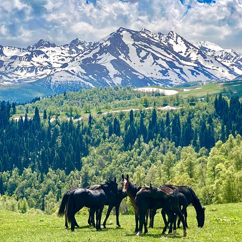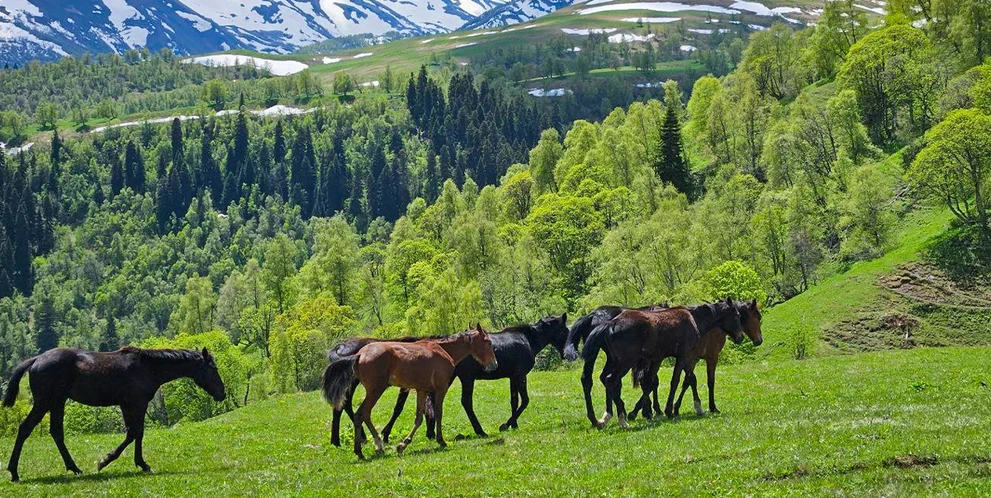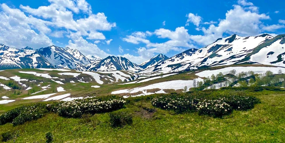 Чем выше поднимаемся в горы, тем сильнее будет виден интереснейший переход природы из зимы в лето. На ваших глазах ковер из зеленой травы будет плавно переходить в снег на склонах гор.