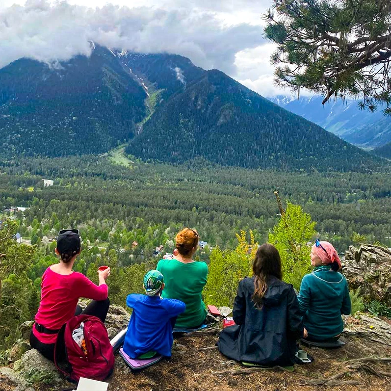 Любуемся отличными видами, обедаем, отдыхаем и отправляемся в обратный путь! Постепенно спускаемся все ниже и ниже и в конце маршрута вернемся в поселок Романтик.