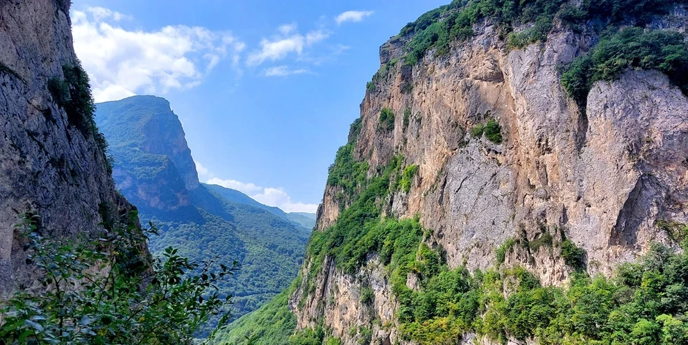 Идем дальше! Потрясающе комфортная тропа ведет за собой в ущелье. Мы пройдем вдоль реки, по деревянному мостику и выйдем к кошаре пастуха. По пути будем делать привалы и любоваться окружающими горами!