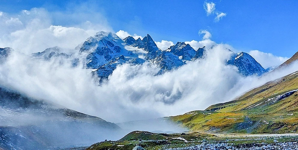 Ущелье не простое, оно с сюрпризом! В конце пути вас ожидает очень красивая горная гряда, украшенная ледниками. Но порой после обеда спускается туман и словно занавесом закрывает от наших глаз ледники. Поэтому загадывайте, чтобы всю эту красоту увидеть!
