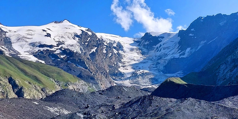 В ущелье пройдем до точки, откуда виден ледник Нахашбита. В этом месте сделаем большой привал, обед и отправимся обратно.