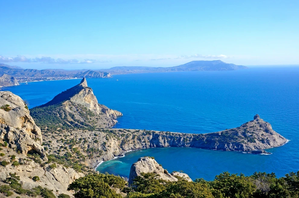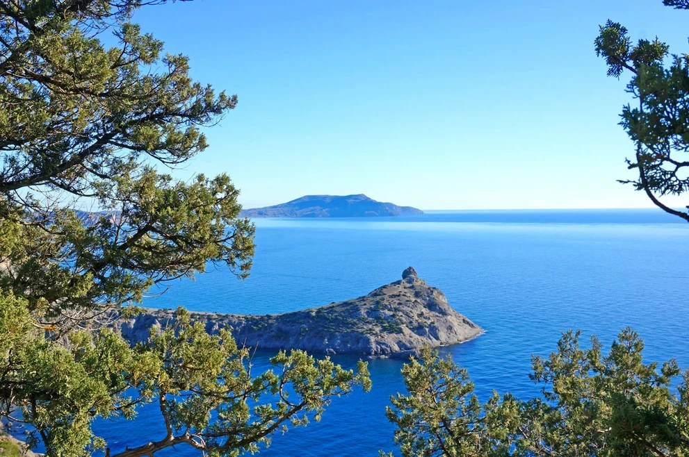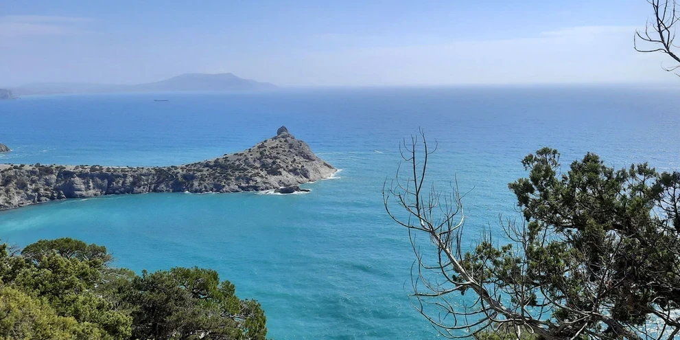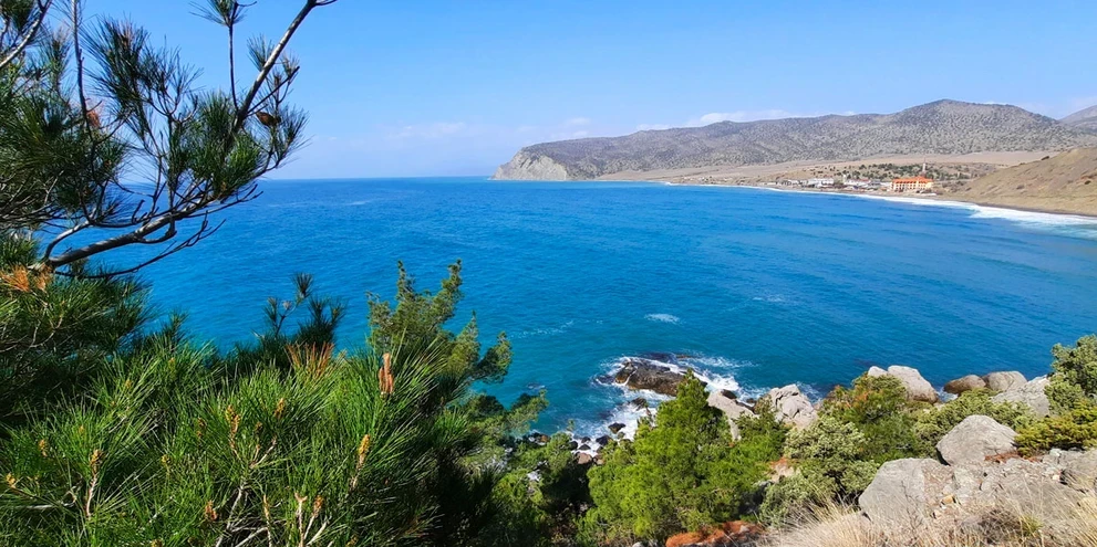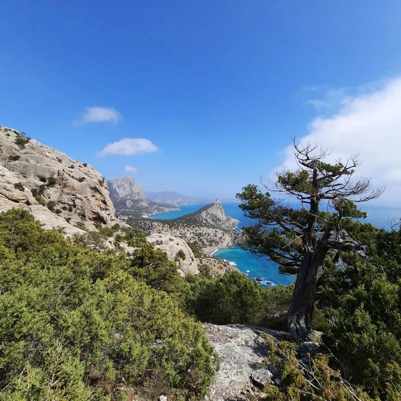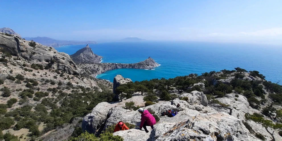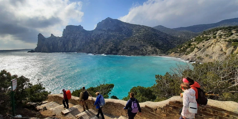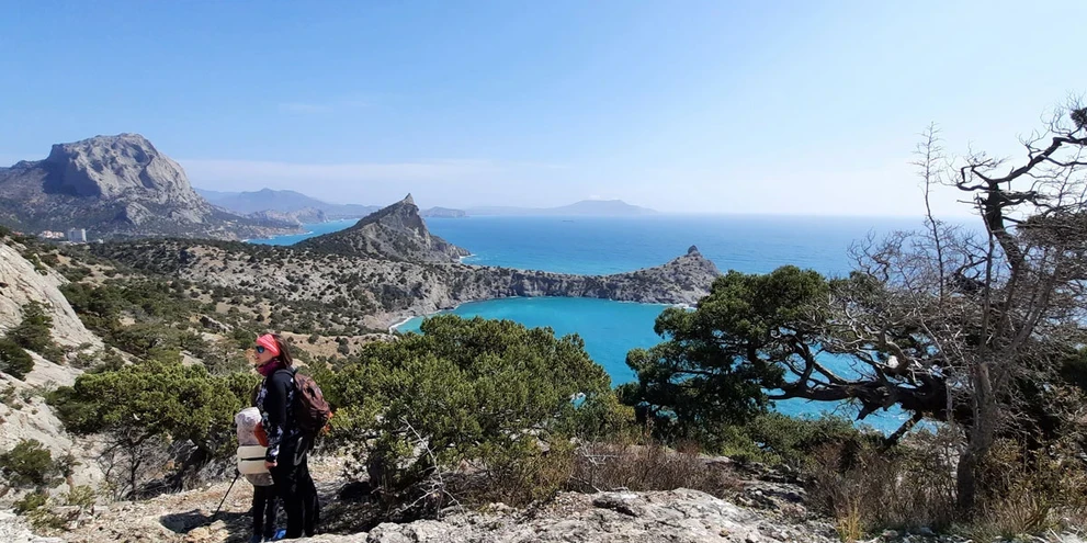Стоя на мысе Капчик, мы видим две бухты: Синюю и Голубую. Чтобы увидеть третью, Зеленую бухту Крыма, нам предстоит совершить треккинг вдоль горы Орёл.