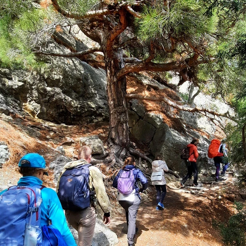 Во время треккинга по Крыму весной порой уже будет жарко, к счастью, на скале Сокол мы сможем отдохнуть в тени сосны Палласа, прогуляться по уникальной роще пирамидального можжевельника и испить вкуснейшей воды из источника святой Анастасии.