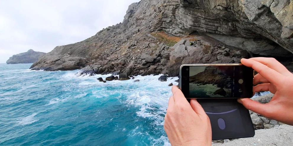 На мысе Алчак есть очень интересное место – Эолова арфа, - хит треккинга по Крыму! Это большое, сквозное отверстие в скале. Свое название грот получил в честь древнегреческого бога Эола, царя ветров. При сильном ветре грот начинает петь, и слышен звук, напоминающий звучание арфы.